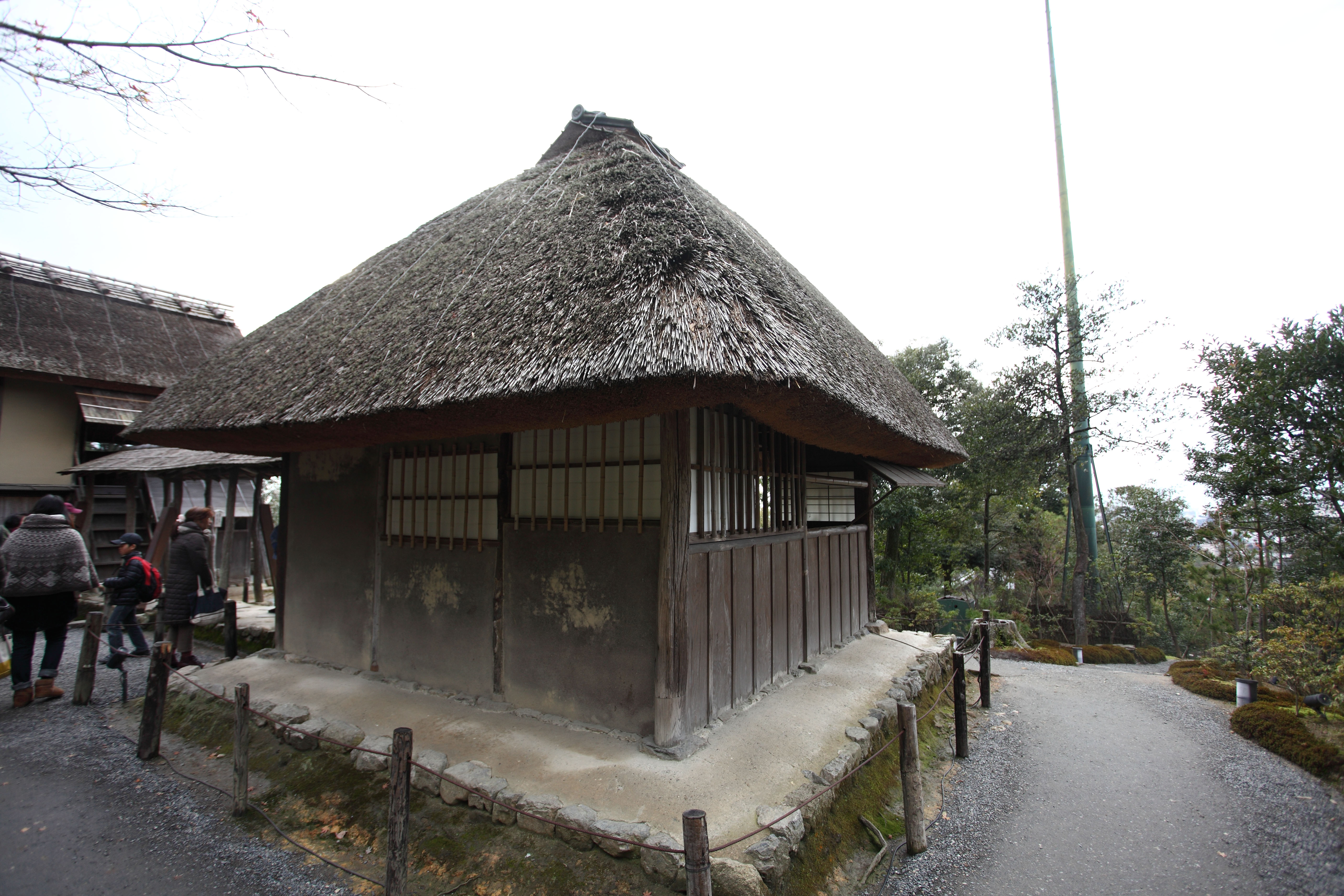 利休”好み”の茶室と言われ、伏見城から移築したもの。利休作であるか定かではない模様。そもそも川辺(海辺?)の近くにあったらしく、秀吉は船で乗り付けて入り込んだとのこと。なぜ傘亭と言うのか?