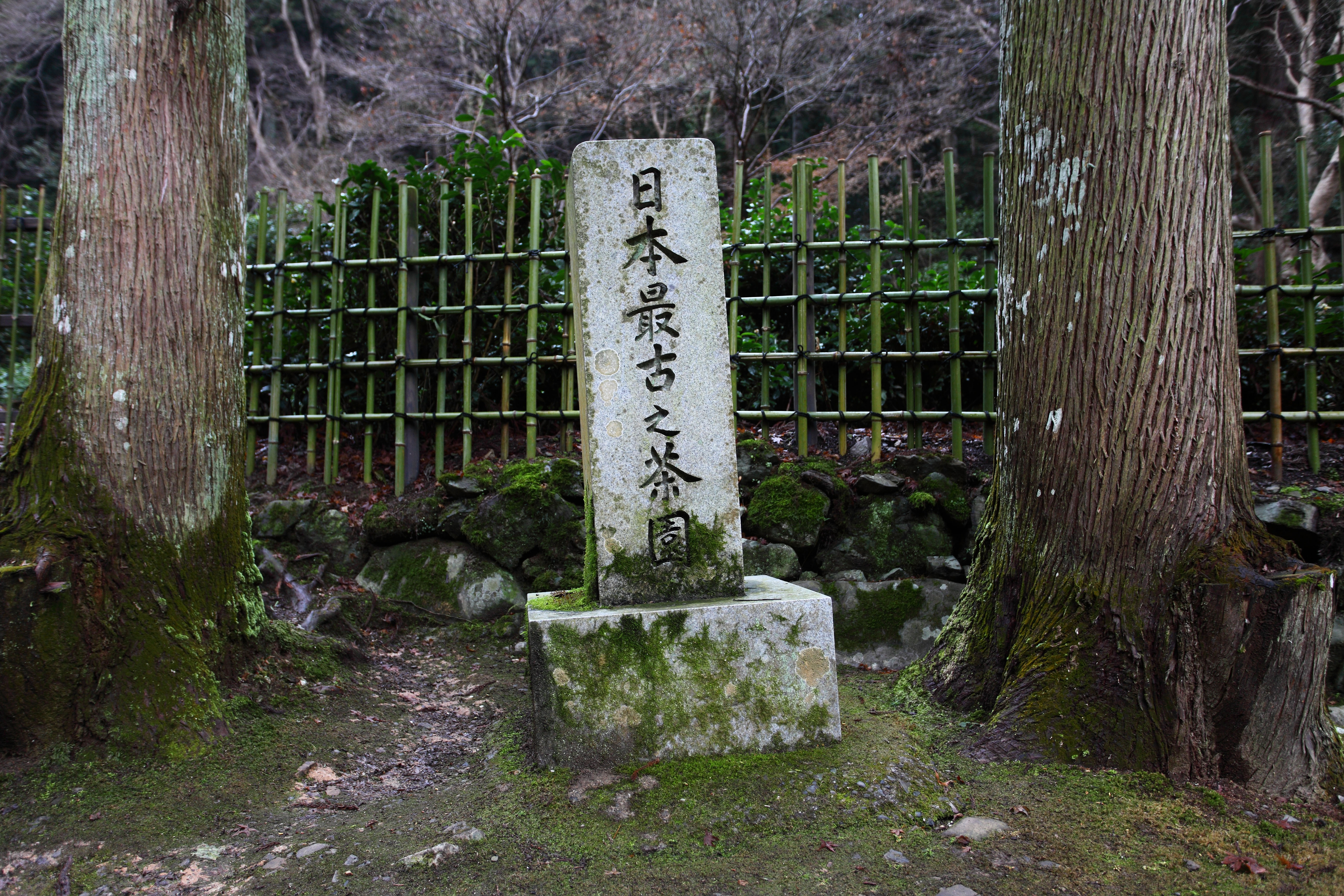 日本最古之茶園の石碑。この石碑を見たくて今回の旅を計画したのでした。この傾きっぷり(この石碑自体は作られたのは最近で昭和四十六年)が良い感じ。