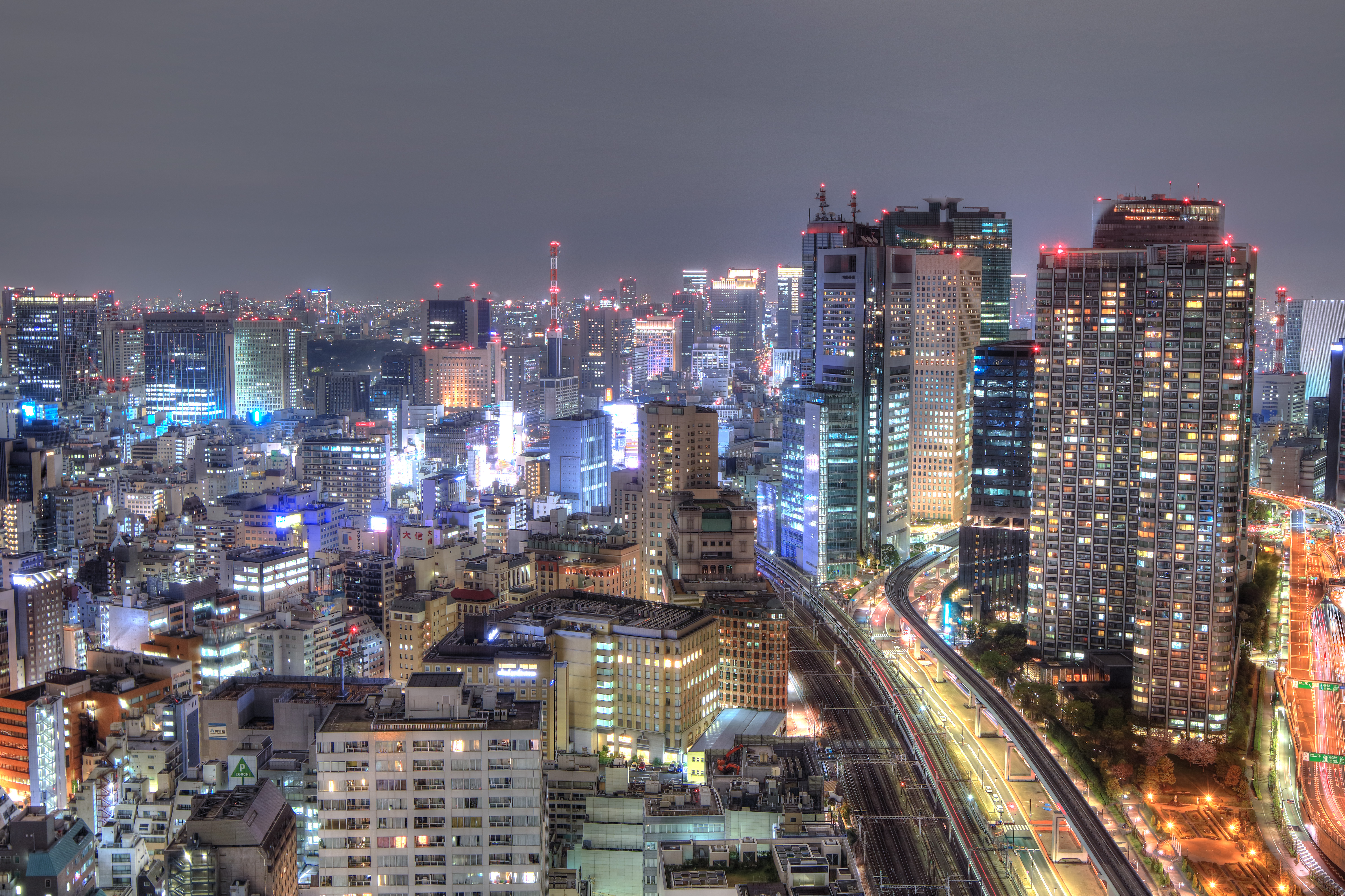 浜松町のワールドトレードセンター(WTC)ビル展望台からの夜景。