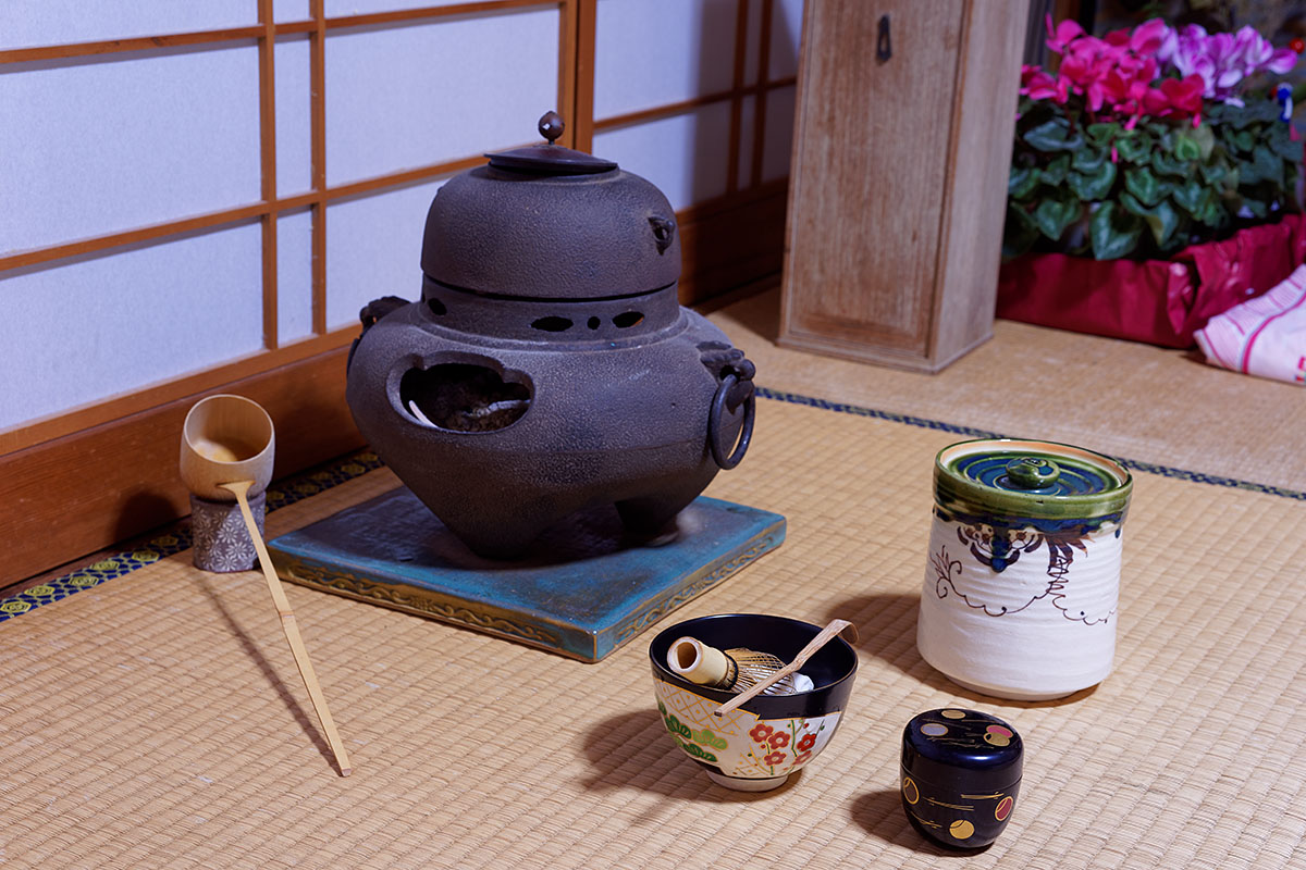 利休以前は、こういった水差などの茶道具を茶室に事前に置いておき、お点前をしていたのに対して、利休はこれを手で持ち運んでお点前をした(運び手前)という記録が残っています。手で持ち運びやすいデザインですものね。