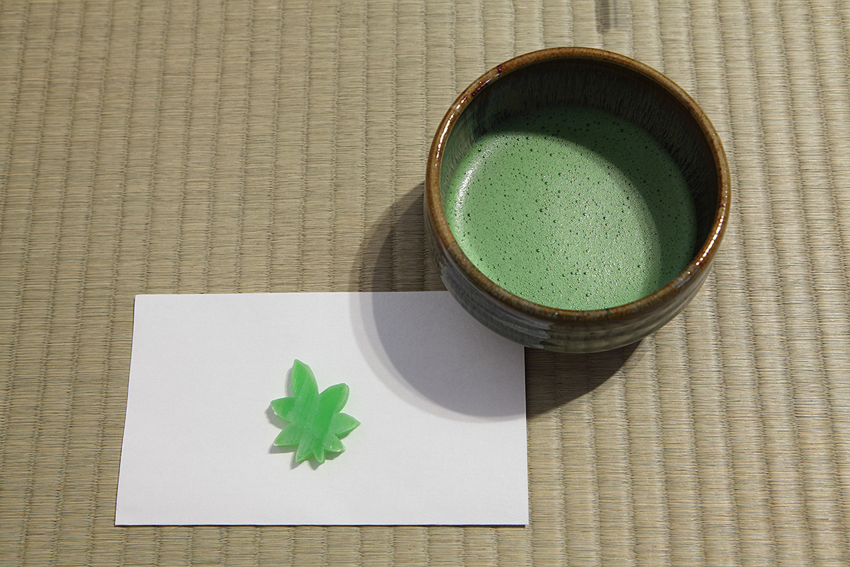 宮下家の紋は`丸に三つ茶の実`。茶の湯を嗜むことになって、家の家紋がまさにお茶の実であるのは嬉しく思っています。茶事・茶会では格を大切にしておりますので、紋付を基本としていますが、今回は縫い紋ではなく、抜き紋にしてみました。その名の通り、縫い付けるのではなく、染める際に抜くわけですね。実に素敵です。そして、先述の絽の七越というのがこの写真でよく分かります。絽の緯糸は、必ず奇数となっており七個ずつ飛んでいるのが分かりますね。七本絽とも言うそうです。これは白生地から見ないとなかなか気に掛けない部分でした。そういう意味で勉強になりました。